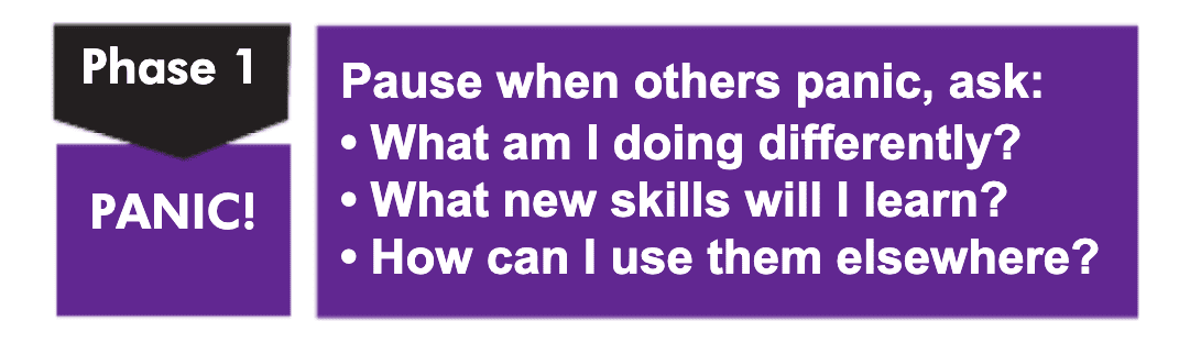 1. Pause when others start to panic, and identify the new skills you're learning.