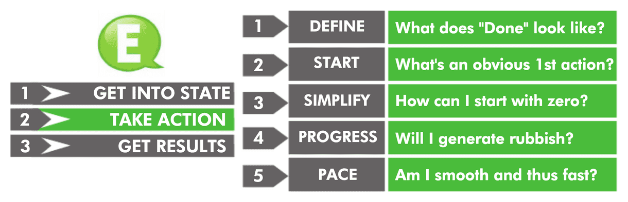 Step #2 — Take EFFORTLESS action. Once you're in the effortless state, you then simplify processes to make the work easier to do consistently. Do that by: